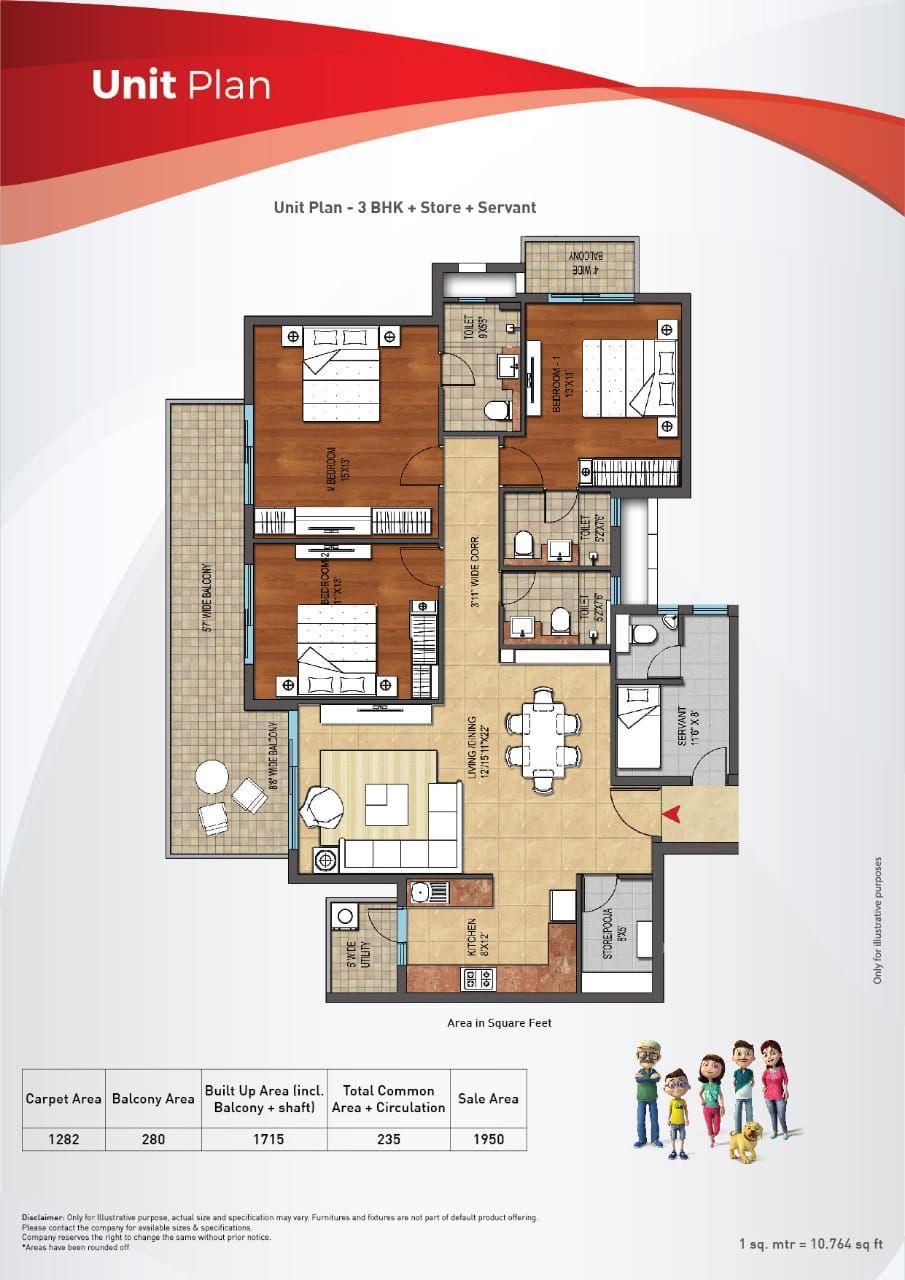 - 3 BHK + Servant Type-I (1950 sq. ft)