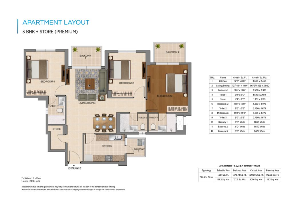 - 3 BHK + Store (1661 sq. ft)